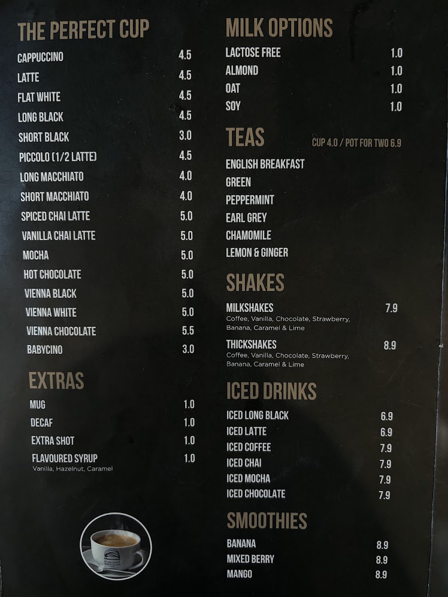 Welcome to St. Georges Bakehouse Playford, a delightful café located at T10/297 Peachey Rd, Munno Para, Australia. This charming establishment is renowned for its expertly crafted coffee and inviting atmosphere. The menu presents a range of hot beverages, with cappuccinos, lattes, and flat whites priced at A$4.50, ensuring a perfect cup for every palate. For those craving something sweet, the thickshakes and smoothies offer refreshingly indulgent options, with the latter starting at A$8.90.